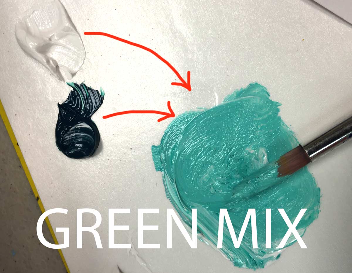 Above: Making a mix using white and green allows you to weaken it’s amazing strength. You can see how blue it is too.